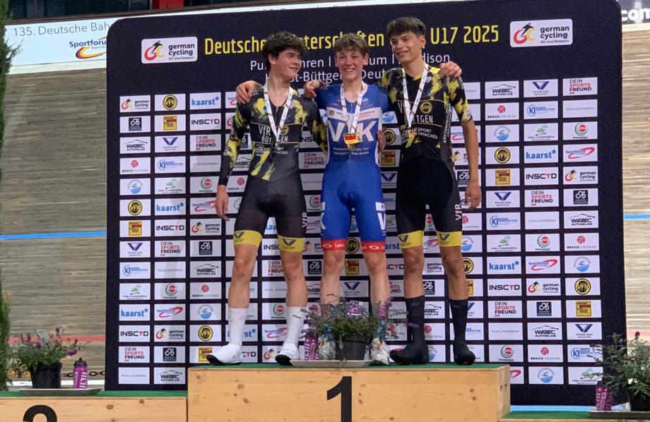 Bei der Sichtung von German Cycling legt Jasper Carls die 2000 m in 2:13,337 min zurück und stellt damit einen neuen deutschen Rekord für die U17m auf! Chapeau!!! Bei der am Wochenende zuvor ausgetragenen Deutschen Meisterschaft errang der Greifswalder zwei weitere Titel. In einem bis zur Schlusswertung offenen Finale sichert sich Jasper den Titel Deutscher Meister im Omnium der U17m vor Oskar Doberschütz und Daan Ensenbach. Am Tag zuvor wurde er bereits Deutscher Meister im Punktefahren. Eine starke und souveräne Leistung mit zwei Rundengewinnen, die sonst nur noch der Zweitplatzierte Daan Ensenbach vollziehen konnte. Dritter wurde Sebastian Weiß. Herzlichen Glückwunsch an alle Platzierten