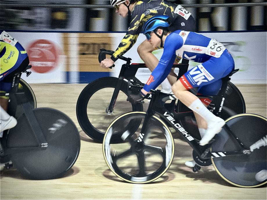 Bei den Junioren konnte Jasper Carls auf Einladung als Gast teilnehmen, da er eigentlich noch in der Jugend unterwegs ist. Mit Rang 2 beim Scratch deutete er allerdings gleich beim Auftaktwettbewerb an, dass er nicht gedenkt, nur mitzufahren. Mit dem vierten Platz schadlos durchs Temporennen gekommen, ging es beim Ausscheidungsfahren dann schon um den ersten Titel, wo er sich wie bereits beim Scratch nur Raul Esch (RSC Waltershausen-Gotha) geschlagen geben musste. Mit einer Silbermedaille in der Tasche ging es ins finale Punktefahren, das nach anfänglicher Zurückhaltung der Favoriten am Ende nochmal richtig spannend um den Silberrang wurde. Letztendlich konnte Jasper sein Rad in der Schlusswertung knapp vor Leon Resag (RSC Cottbus), der die Bronzemedaille gewann, über die Ziellinie schieben und sich so ein zweites Mal an diesem Abend die Silbermedaille sichern. Der Titel ging fast schon ungefährdet wieder an Raul Esch.