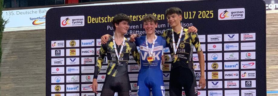 Bei hohen Temperaturen wurden in Dudenhofen die Titel auf der Bahn vergeben. Die Sportler vom Team Radsport konnten dabei mit Titeln und Medaillen überzeugen. Jasper Carls zuvor noch 8. bei der DM Straße holte zum Auftakt den Titel in der 2000m Einerverflolgung der U17m.